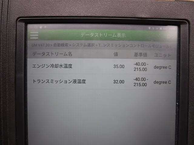 冷却後、スキャンツールでライブデータを確認、規定温度内でオーバーフローさせます。