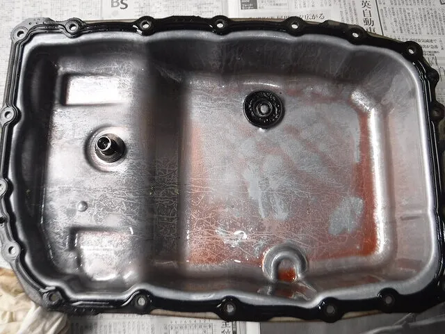 若干の鉄粉とオイルパンの底に汚れがうっすらついている程度です。