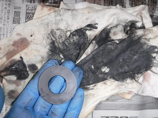 マグネットをウエスとクリーナーを使用しキレイにします。