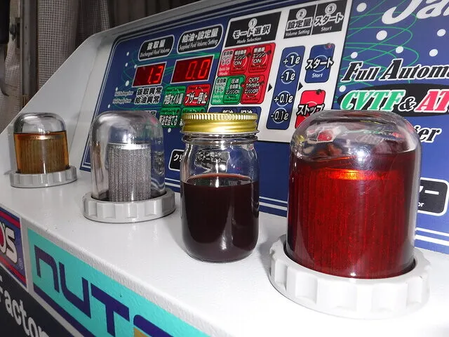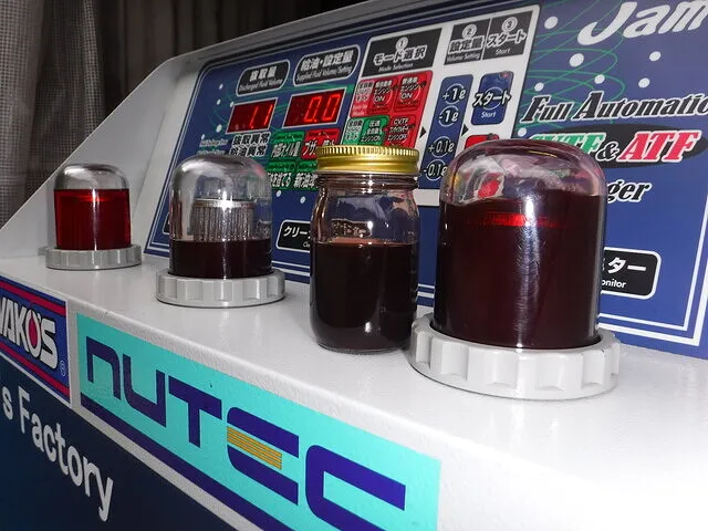 さらにこのまましばらく放置した後、NUTEC NC-65に入れ替えを行います。(NC-65は高価ですが、この車両の純正ATFよりはるかに安く、性能もいいですよ。)