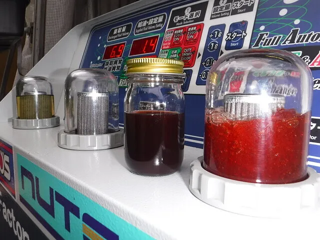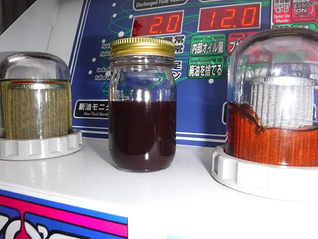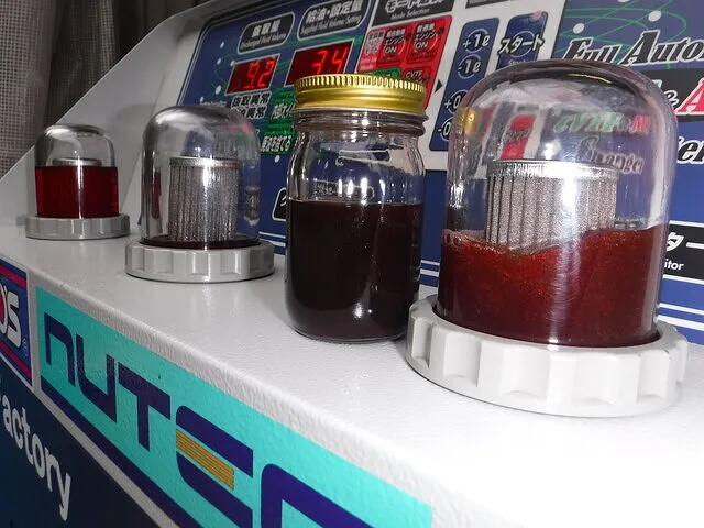 右のクリーナーモニター内のオイルが現在ミッションの中を流れているオイルです。