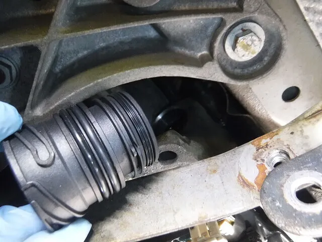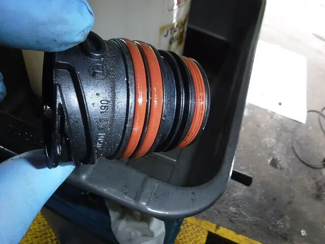 写真を見ていただくと分かるように、6HPの初期モデルのEGSスリーブはOリングが赤でして、確実に漏れます。