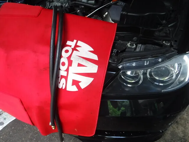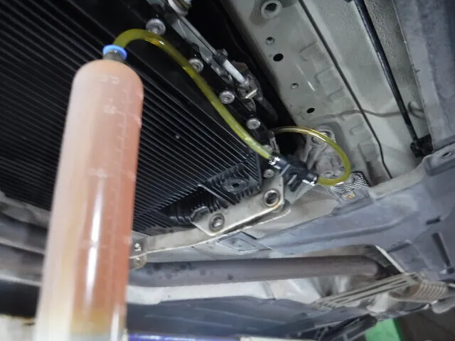 今回は車両前方のヒートエクスチェンジャーにアタッチメントを接続しました。