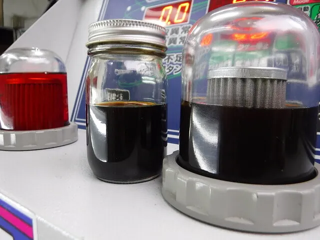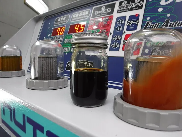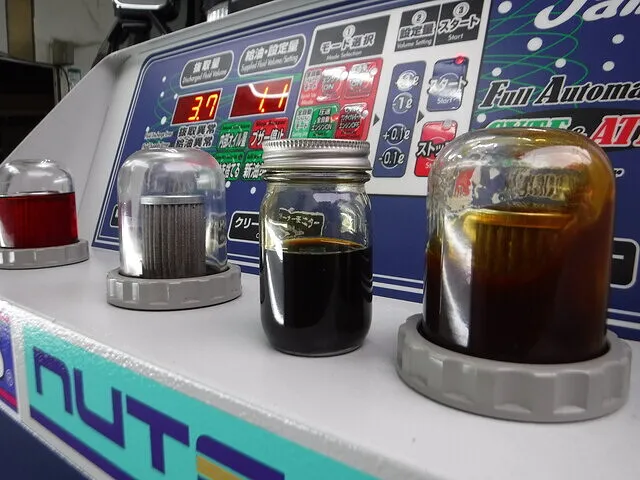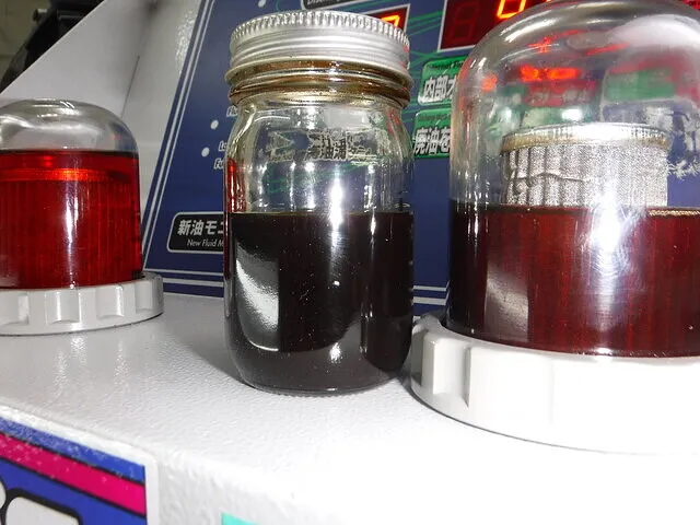 右の廃油モニター内のオイルに赤みが出てきていますね。