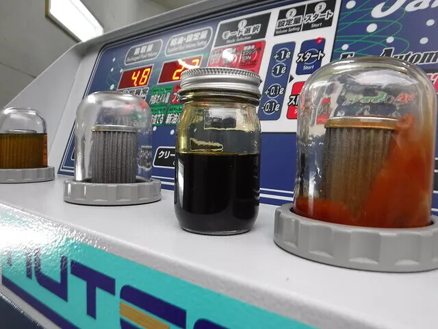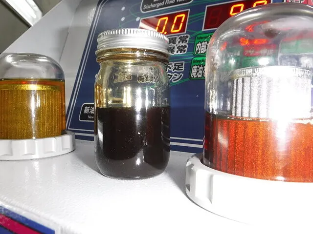 明度は新油に比べて暗いですが、次の交換でほぼキレイにできるレベルかと思います。