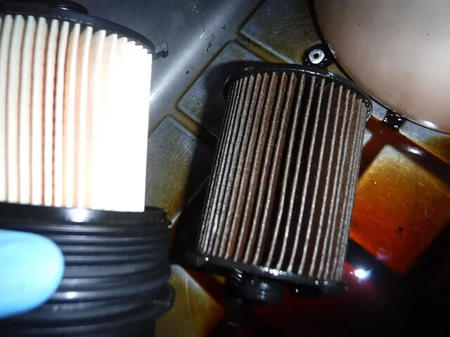 オイルエレメント交換、新旧比較。