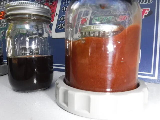 赤みがある程度で透明感は新油同等に仕上がりました。