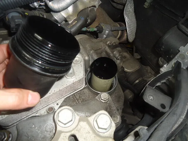 カートリッジ式のフィルターがミッションケース上部にあるので交換します。