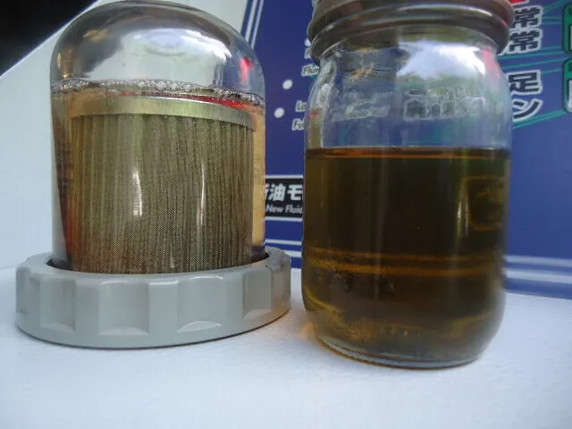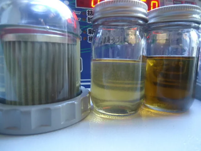 右のビンの中のオイルがドレンアウトしたフルードです。