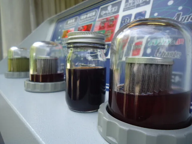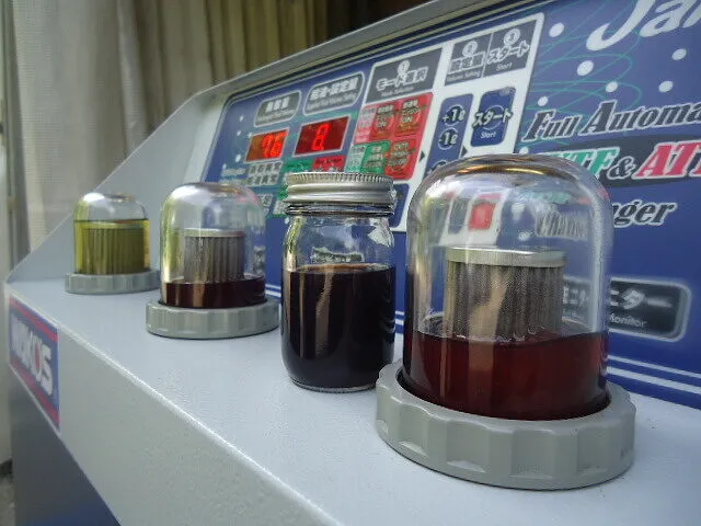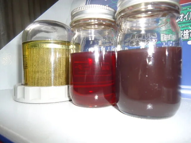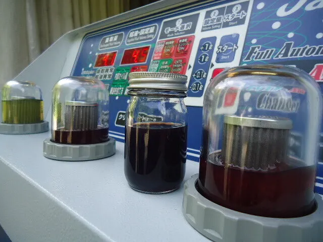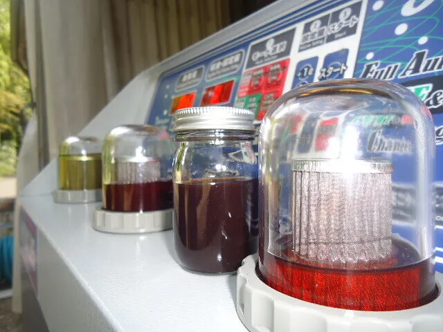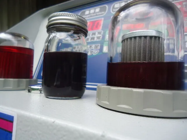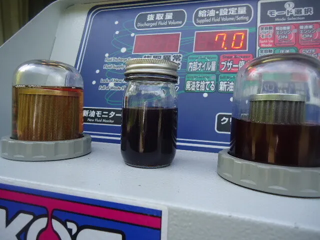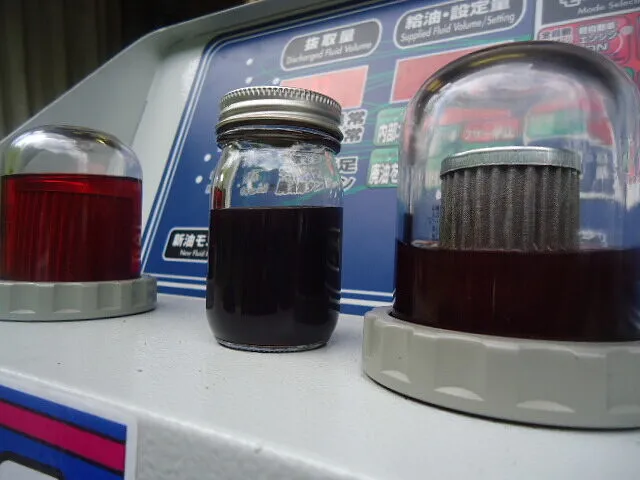 排出が終わった手前の廃油モニター内のオイルが透き通ってますね。
