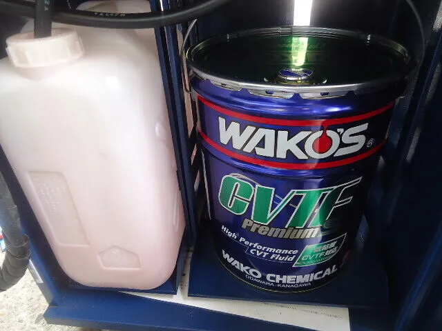 CVT交換後短いピッチでフルード交換をしてもジャダーおさまらないようで、当社でワコーズCVTFプレミアムスペックに入れ替えをご希望です。