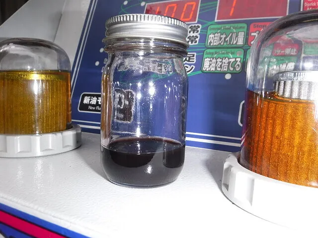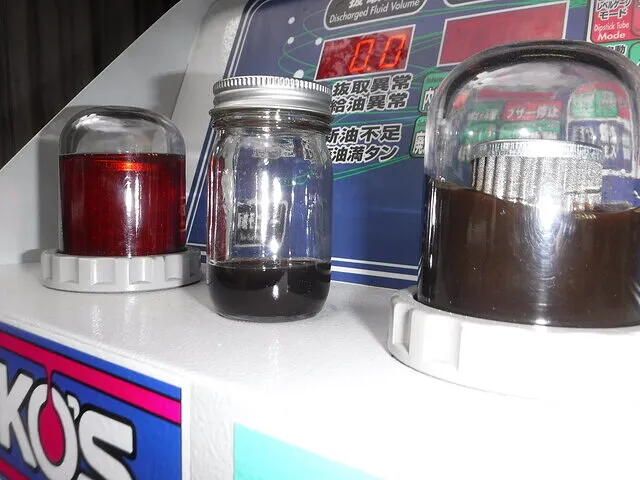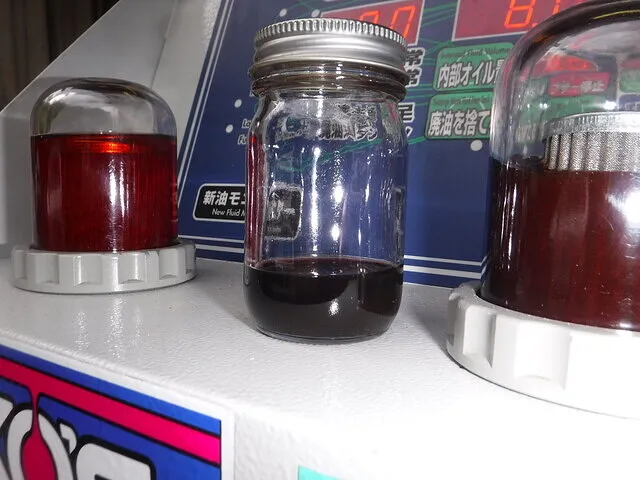 右の廃油モニター内のオイルに赤みがでてきましたね。