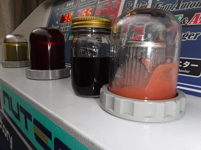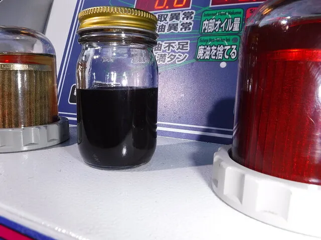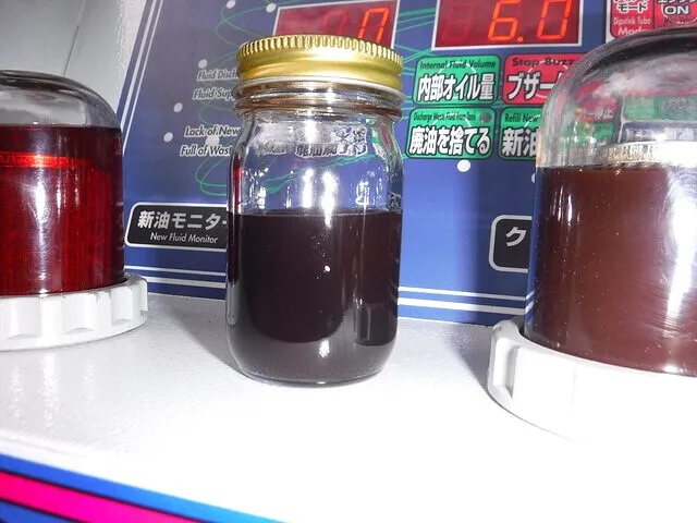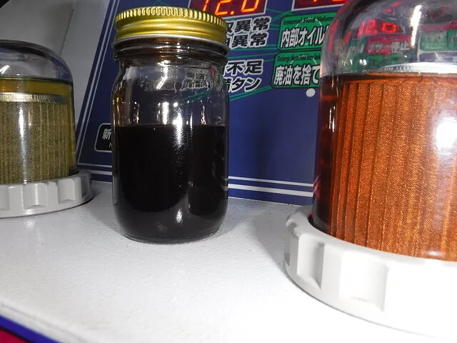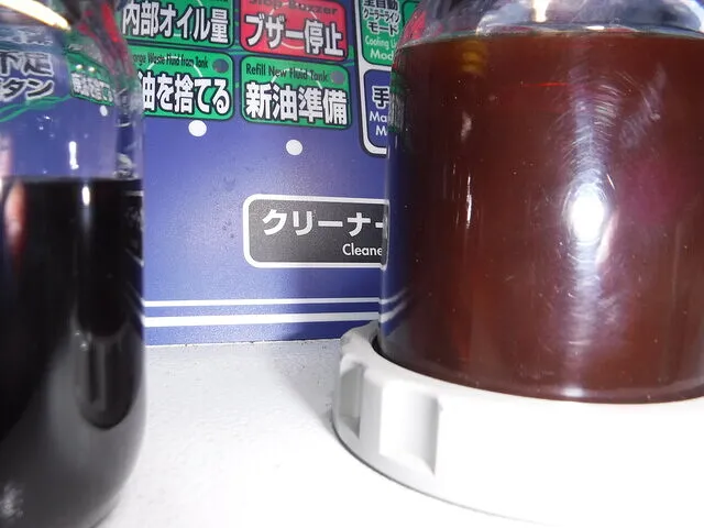 右の廃油モニター内のオイルの赤みが薄くなってきました。