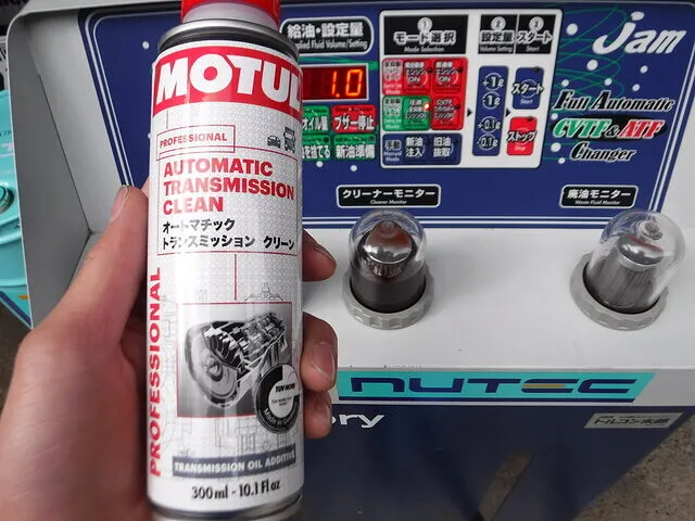 今回の作業内容は、オイルパン脱着清掃、モチュールATCでフラッシング後、アイシンAFW+ですすぎ、ニューテックNC-65で仕上げます。