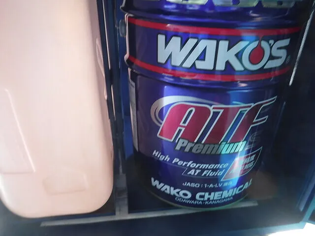 オーナー様はサーキットでハードに遊ばれるようですので、せっかくですからATの保護と耐熱ダレ性、伝達能力の向上を図るため、WAKO’S ATF Premium S への入れ替えを提案させていただきました。