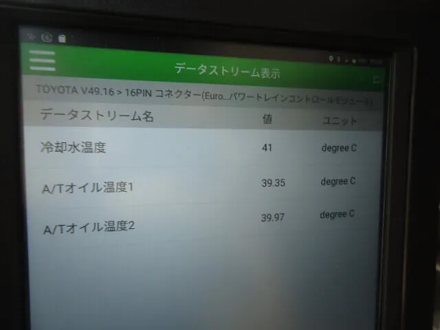 診断機を使いフルードの温度を確認します。