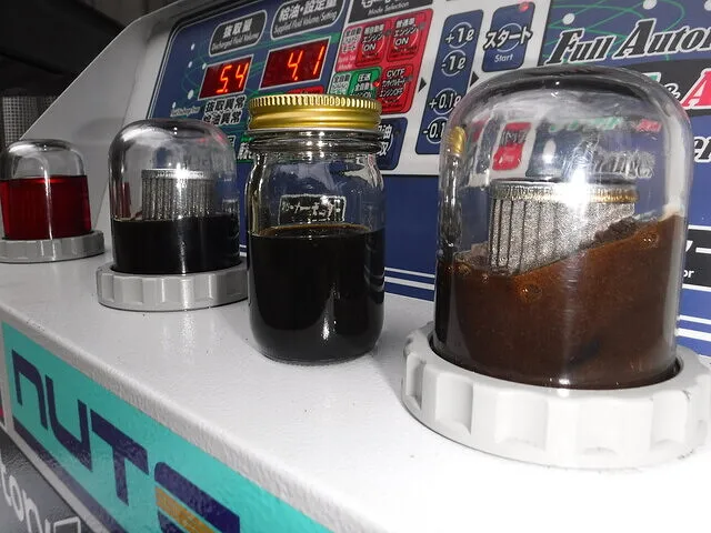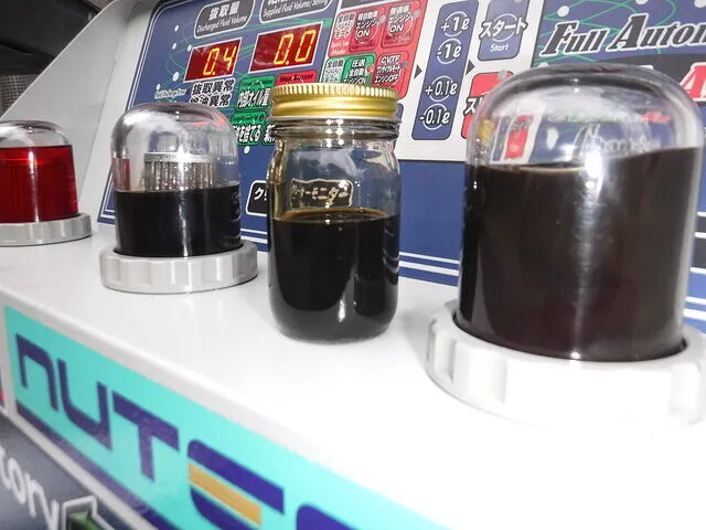 30分ほど放置した後ですが、先ほどよりも右のクリーナーモニター内のオイルが濁っています。