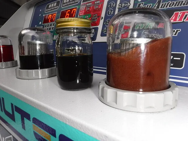 さすがに交換前のこのフルードの状態では粘度が下がり、しっかりと伝達、油圧保持もできていないでしょうから。