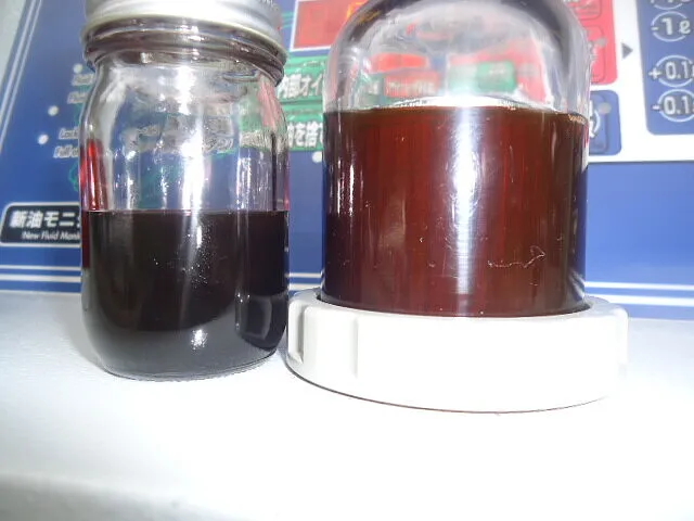 左の新油モニターのオイルと右のクリーナーモニターのオイルが一緒の色になっているのがお分かりになりますでしょうか?