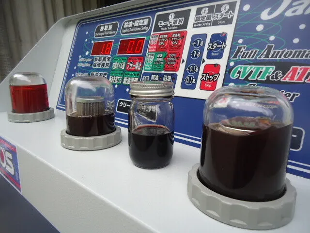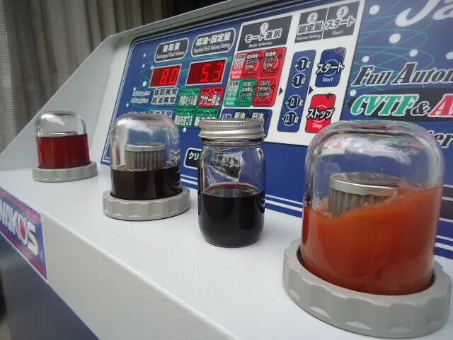 右の廃油モニターを通って廃油タンクに車両内のATFが流れていきます。
