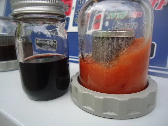 実際に現物を見てみるとクリナーモニター内のオイルがもう少し濁った状態です。