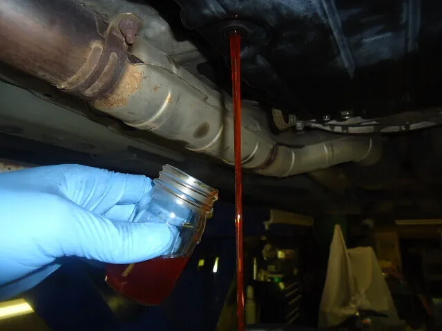 オーナー様はオイルパンの中がどれだけ汚れているか、どんな色のATFが出てくるのか見てみたいとのことですので、途中まで立ち合いでの作業になりました。