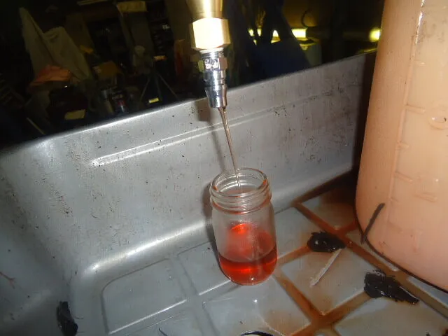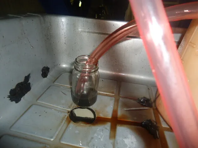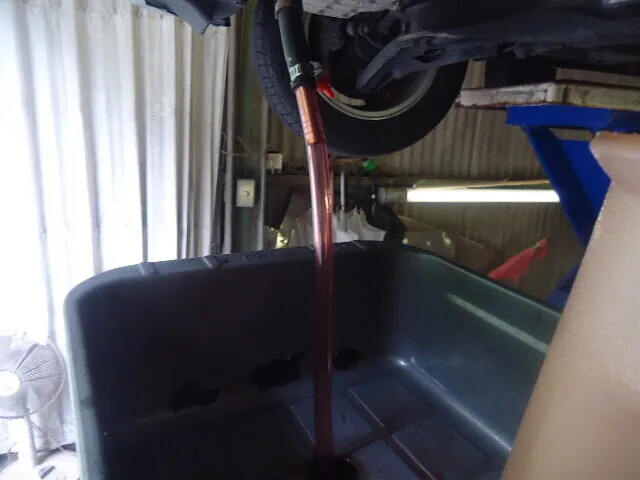 ゲージ付き車ですのでホースを外す際に比色用にビンに採取します。