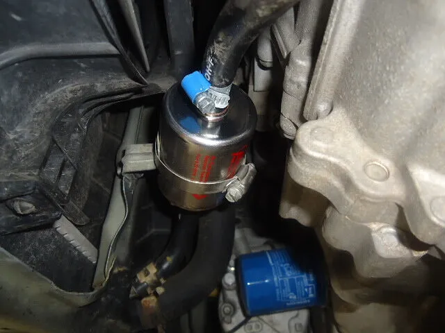 クーラーラインのフィード側(吐出)からラジエターに入る手前に取り付けました。