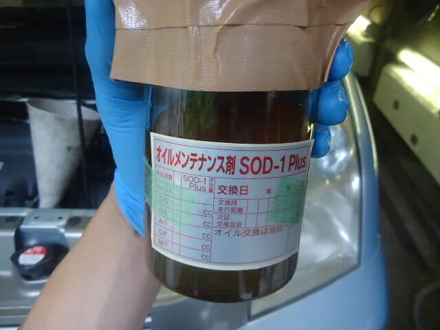 仕上げにオーナー様持ち込みのSOD-1を添加します。(SOD-1も当社はD1ケミカルの正規品取扱店、施工店登録されていますので持ち込みはお断りしております)