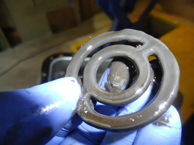オイルパンのそこに細かい金属片がちらほらとあるのがお分かりになりますでしょうか?