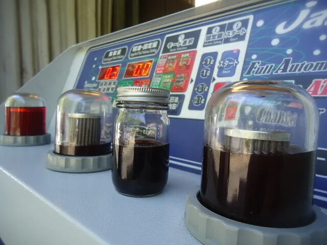 徐々に右の廃油モニターのオイルの色が薄まってきてますね。