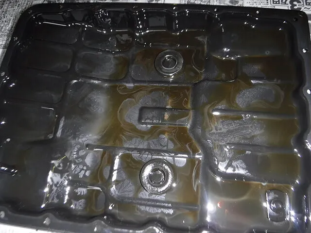 灰色の粉がオイルパンの底にたまっているのがよくわかりますよね?