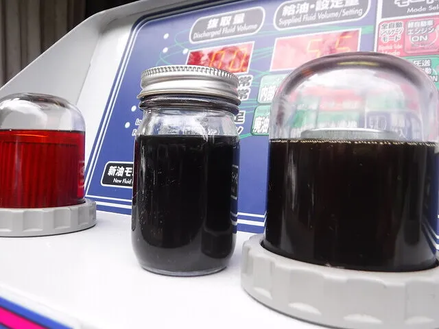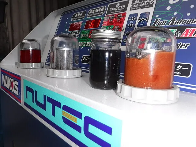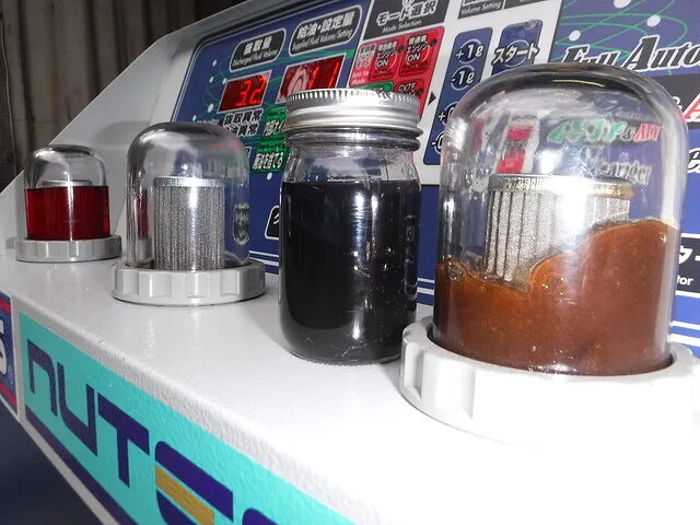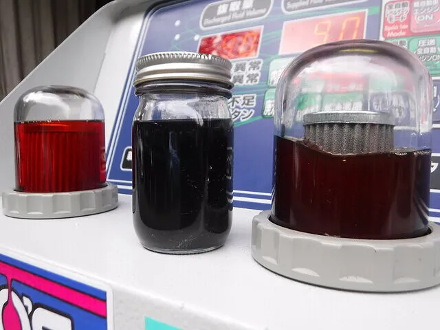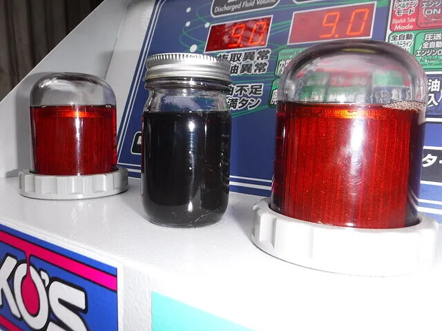 1回目の交換よりも早い段階で右の廃油モニター内のオイルが赤みが出てますね。