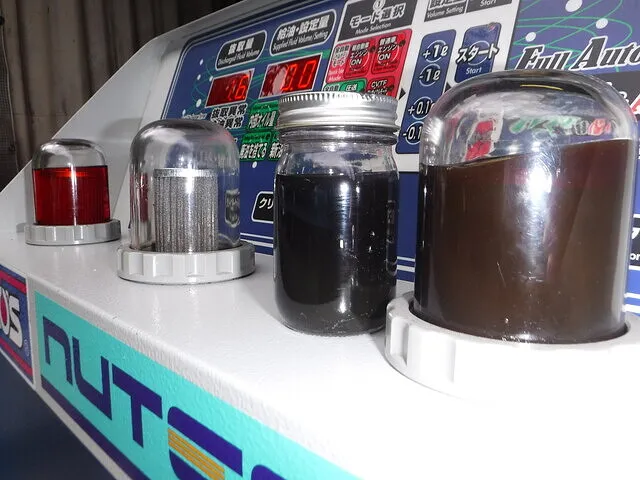 右の廃油モニター内のオイルが赤みが出て茶色になってきましたね。