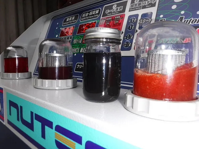 先ほどより右の廃油モニター内のオイルが赤色に変わってきています。
