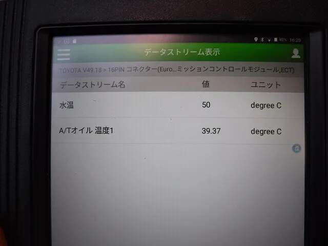 新油を注入し、F-PETとトルコン太郎を接続後、エンジンをかけ、暖気したところです。