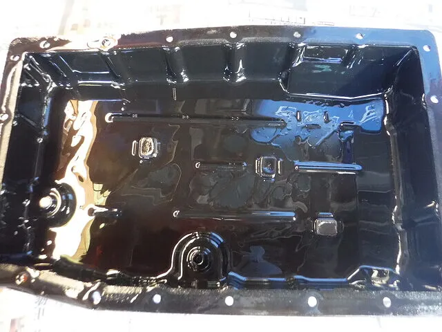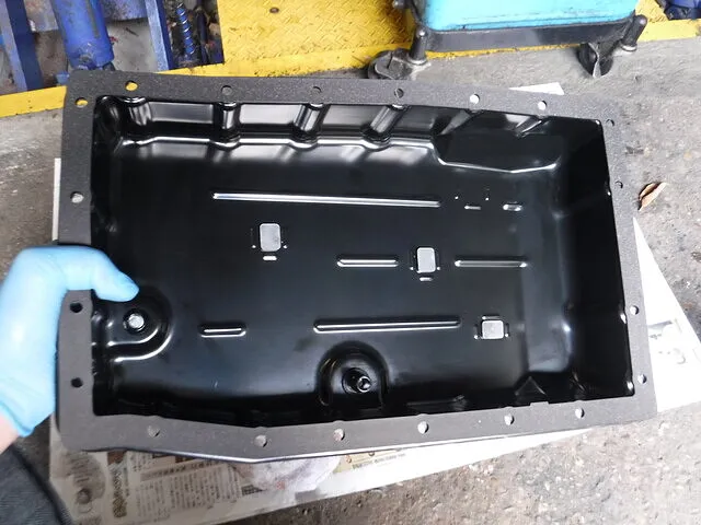 オイルパンが黒いので汚れはなさそうに見えますが、意外と沈殿物、スラッジ等はありません(笑)