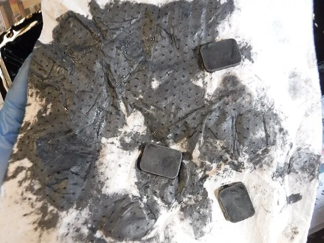インターバルをしっかりとった後、写真には写らないほどの、細かい摩耗粉が対流していました。