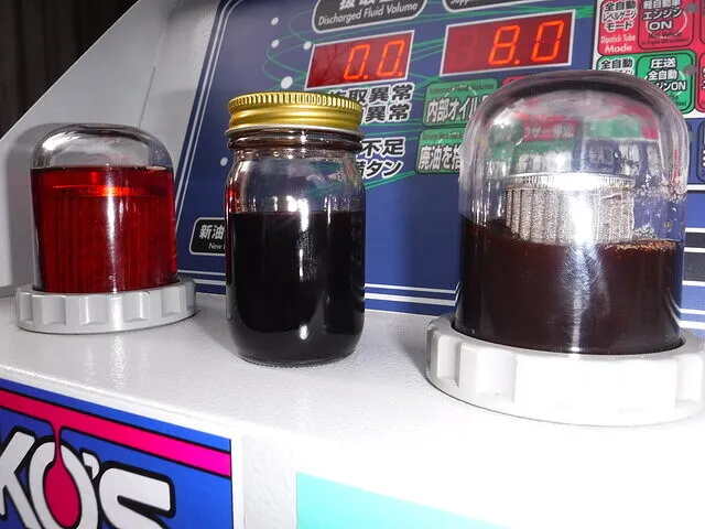 右の廃油モニター内のオイルの赤みがかなりでてきましたね
