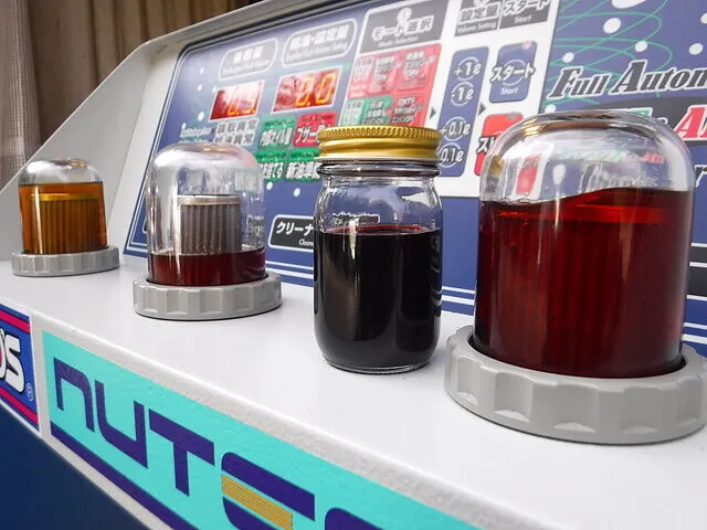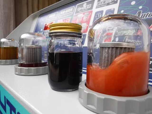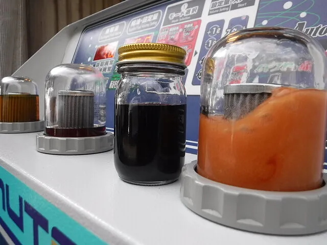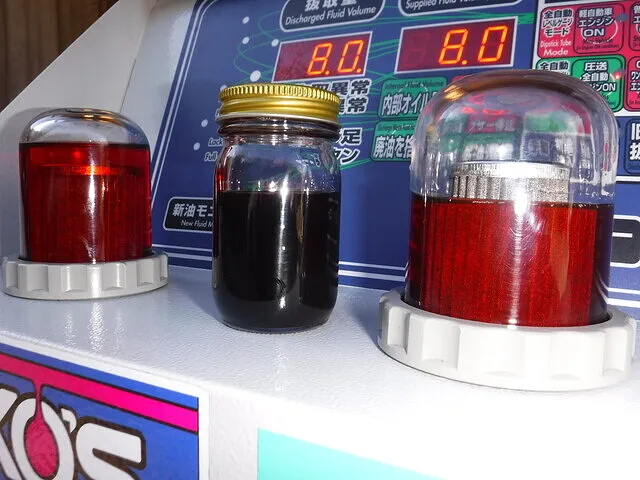 右の廃油モニター内のオイルの色味がオレンジ色に変わってきました。