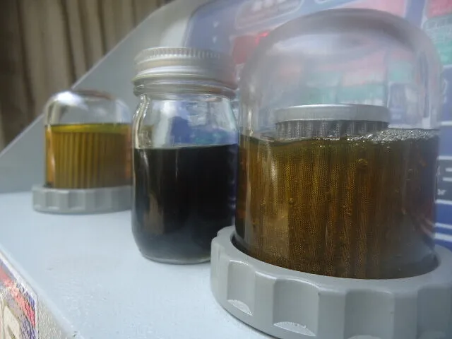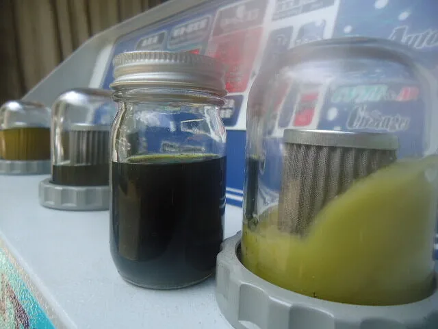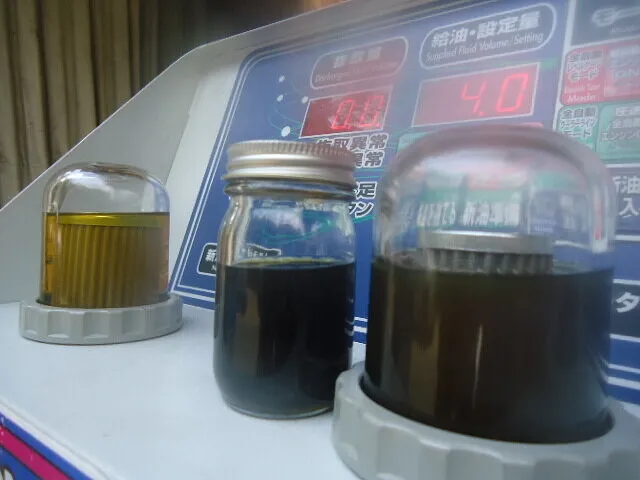 先ほどよりも右の廃油モニター内のオイルが色味が薄くなってますよね。