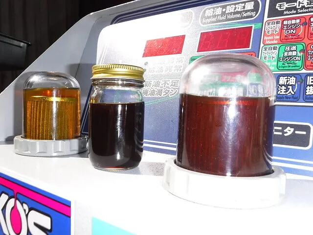 かなり白飛びしていてわかりにくいのですが、先ほどよりも右の廃油モニター内のオイルの赤みが薄まってきました。