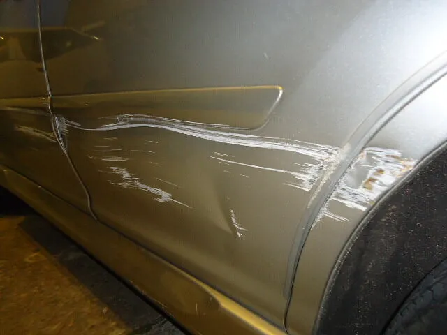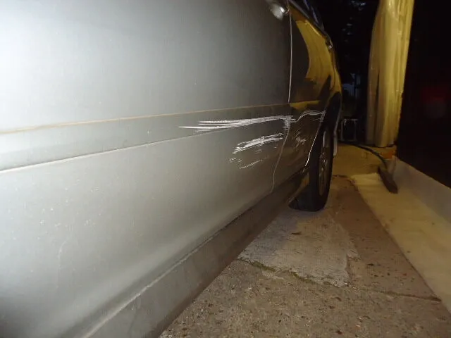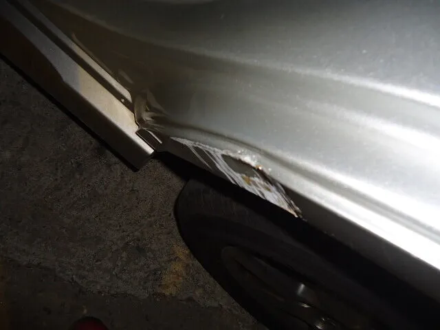 左フロントドア、リアドア、リアクォーター、サイドステップ、リアバンパーまでの損傷です。