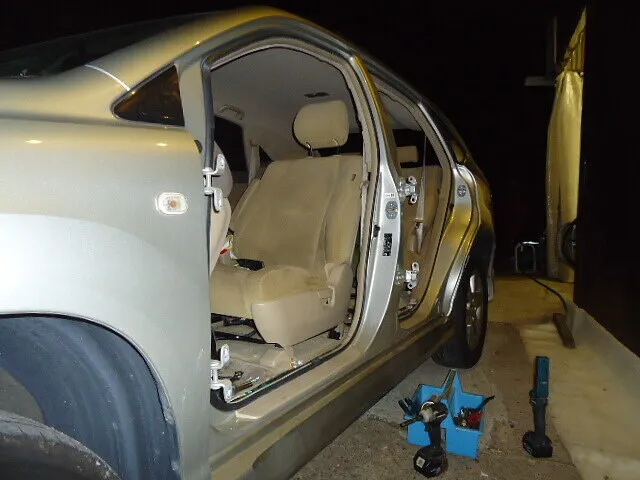 プラサフ研磨後、ドアの付属部品等を取り外しました。