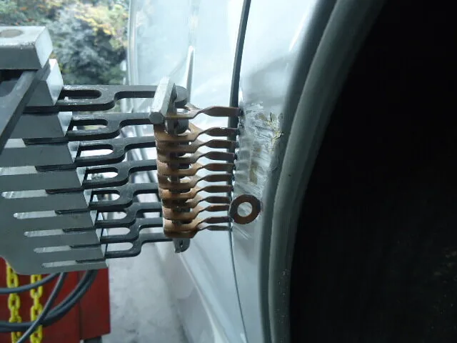 スタッド溶接機でワッシャーを細かく溶着させます。