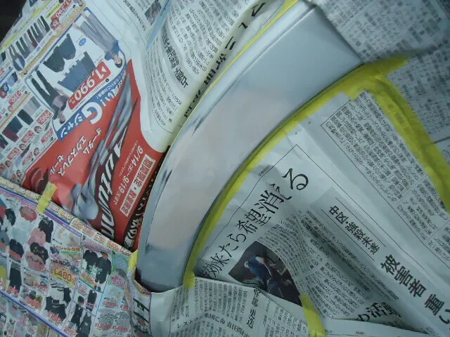 新聞紙は塗装する際にチリやほこりが付きやすいと言われますが、ビシッと貼れば塗装時にバタつくことも一切ないですし、しっかりエアブローするなりすればあまりゴミは付着しません。