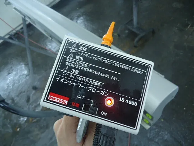 このイオンシャワーブローガンでエアーブローすると静電気が取れます。