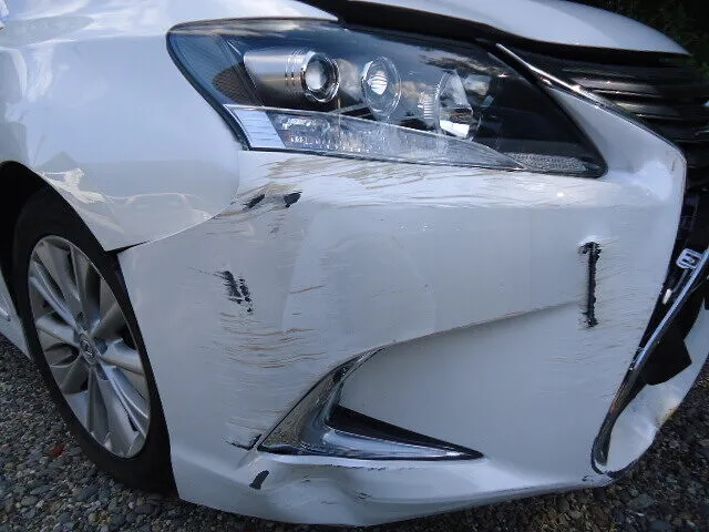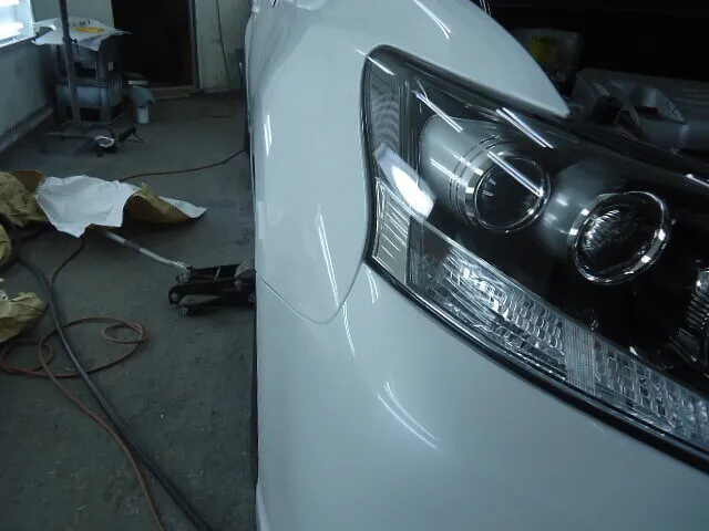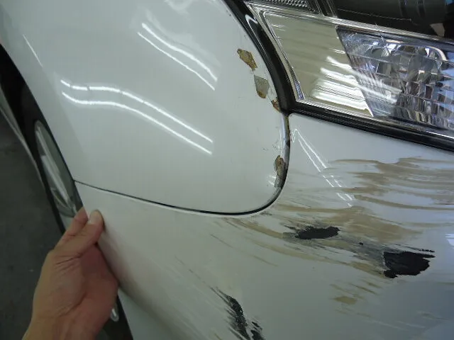 右フロントあたりを壁に擦りつけた事故車の修理事例になります。
