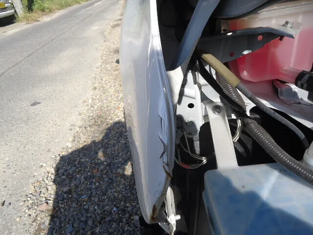 右フロントフェンダーも押されて外側に折れ曲がっていますね。