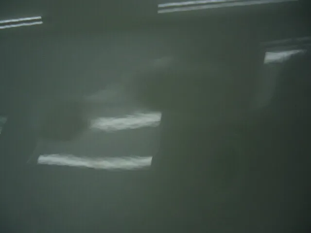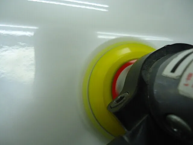 シングルポリッシャーで磨いてボヤけた薄い傷をスポンジバフで消します。